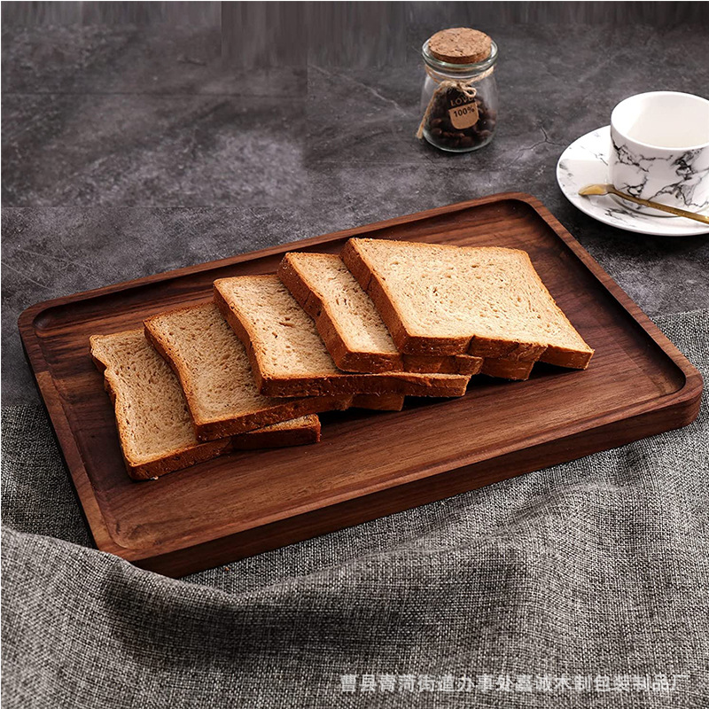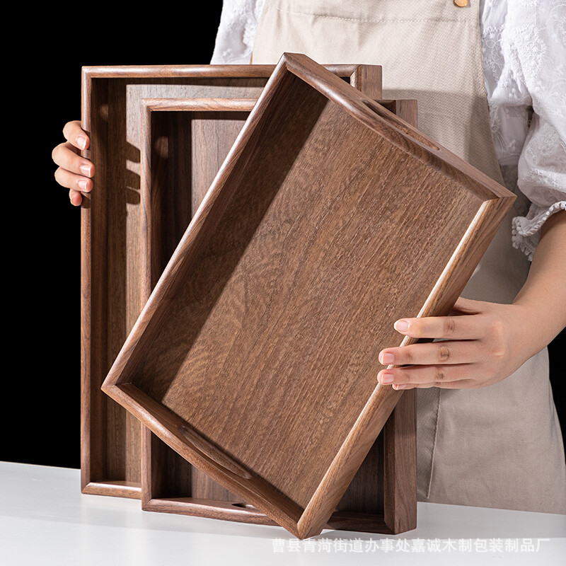 日本式黒胡桃木製トレー北欧長方形家庭用茶皿果物放水コップトレーお菓子皿