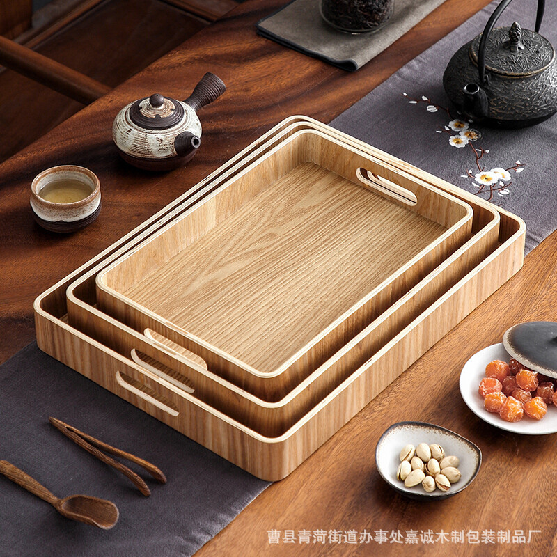 実木家庭用朝食皿長方形茶盤水杯トレー日本式パンお菓子皿竹木トレー