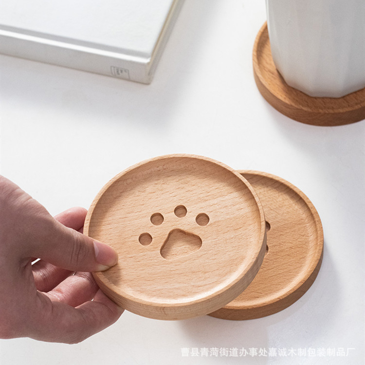 アニメ猫爪水コースターレストラン飲料店円形実木食マットコーヒー断熱マット木製マグカップマット