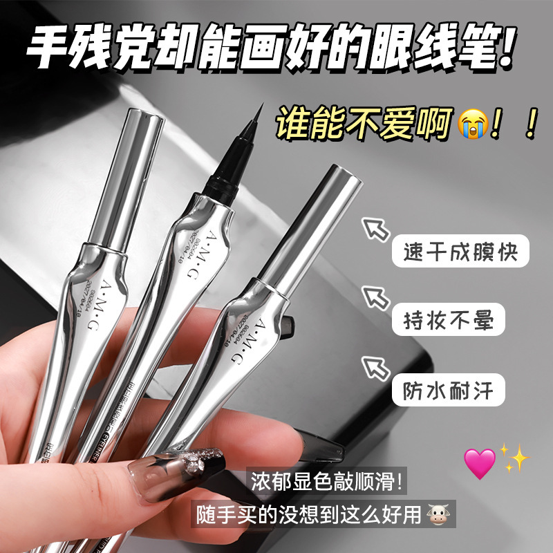 A.M.G ポジショニングリキッドアイライナーペン、滑らかで速乾性のアイライナー、ウォータープルーフ、にじまない、長持ちするカラーリングブラウンアイライナー