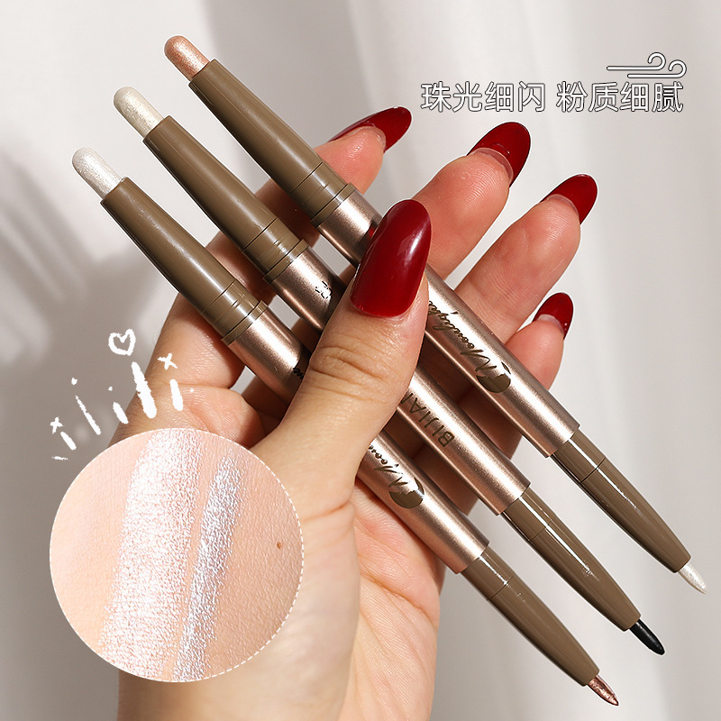 筆職人の双頭両用臥蚕筆の女性の細い閃光が二合一の防水で目に染まらないアイライナーのペン