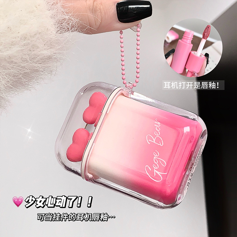Gege熊心水光絨毛霧唇釉薬マット鏡面セット口紅学生党素顔白リップクリーム