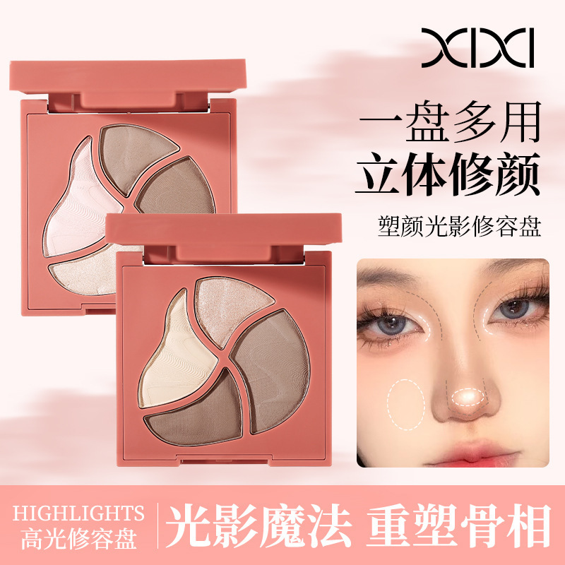 Xixi塑像顔光影修容盤マット光立体ハイライト顔影総合鼻影ハイライト修容一体盤