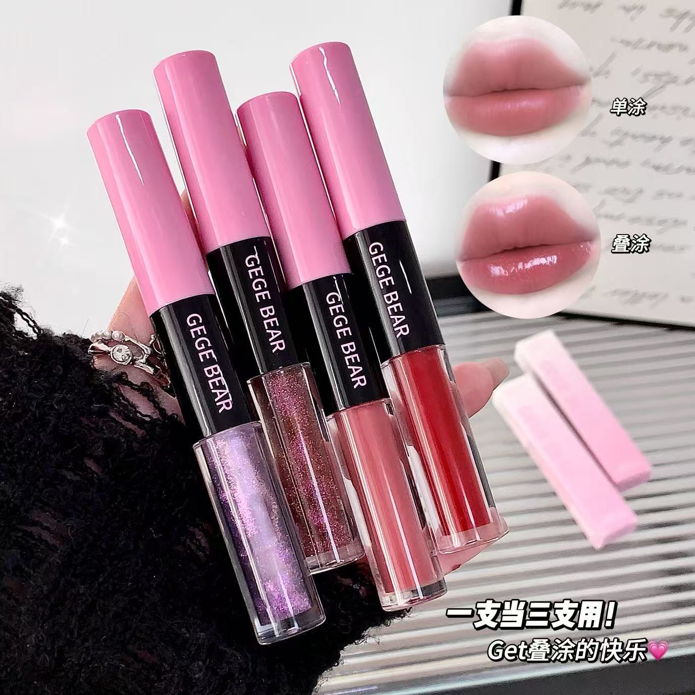 Gege bear多効果のまぶしい色の双頭の唇の釉薬は積み重ねて細くきらきらしています。