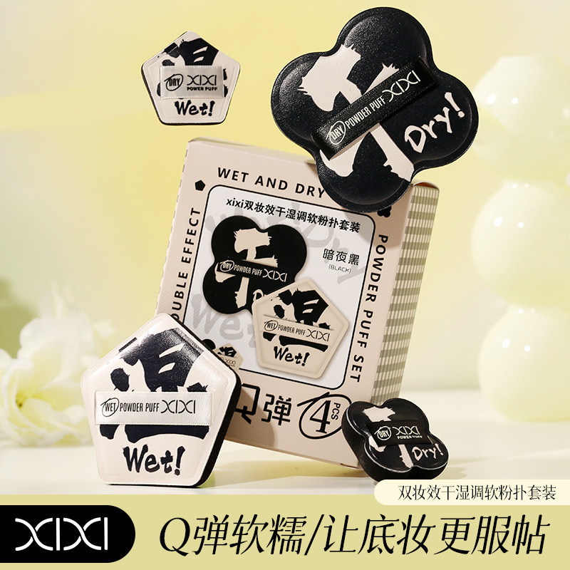 Xixiダブルメイク効果乾湿調ソフトパフセットQ弾ソフトモチモチが食べにくい粉クッションファンデーション化粧スポンジ