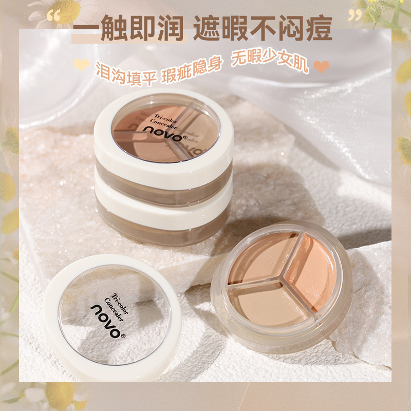 NOVO浄潤軽やか三色コンシーラー水潤保湿不カード粉カバーニキビ跡涙溝カバーディスク
