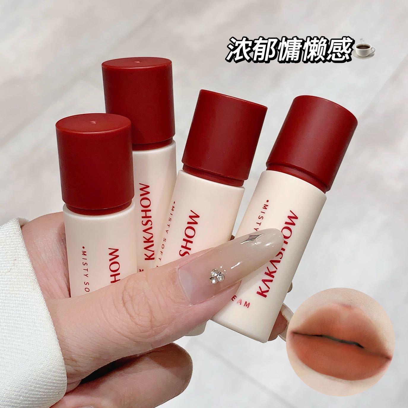 Kakashowかすんで柔らかい霧の唇のクリームのつや消しの柔らかい霧の口紅の黄色の皮の自然なすっぴんは白い学生の平価の唇の釉薬を現します。