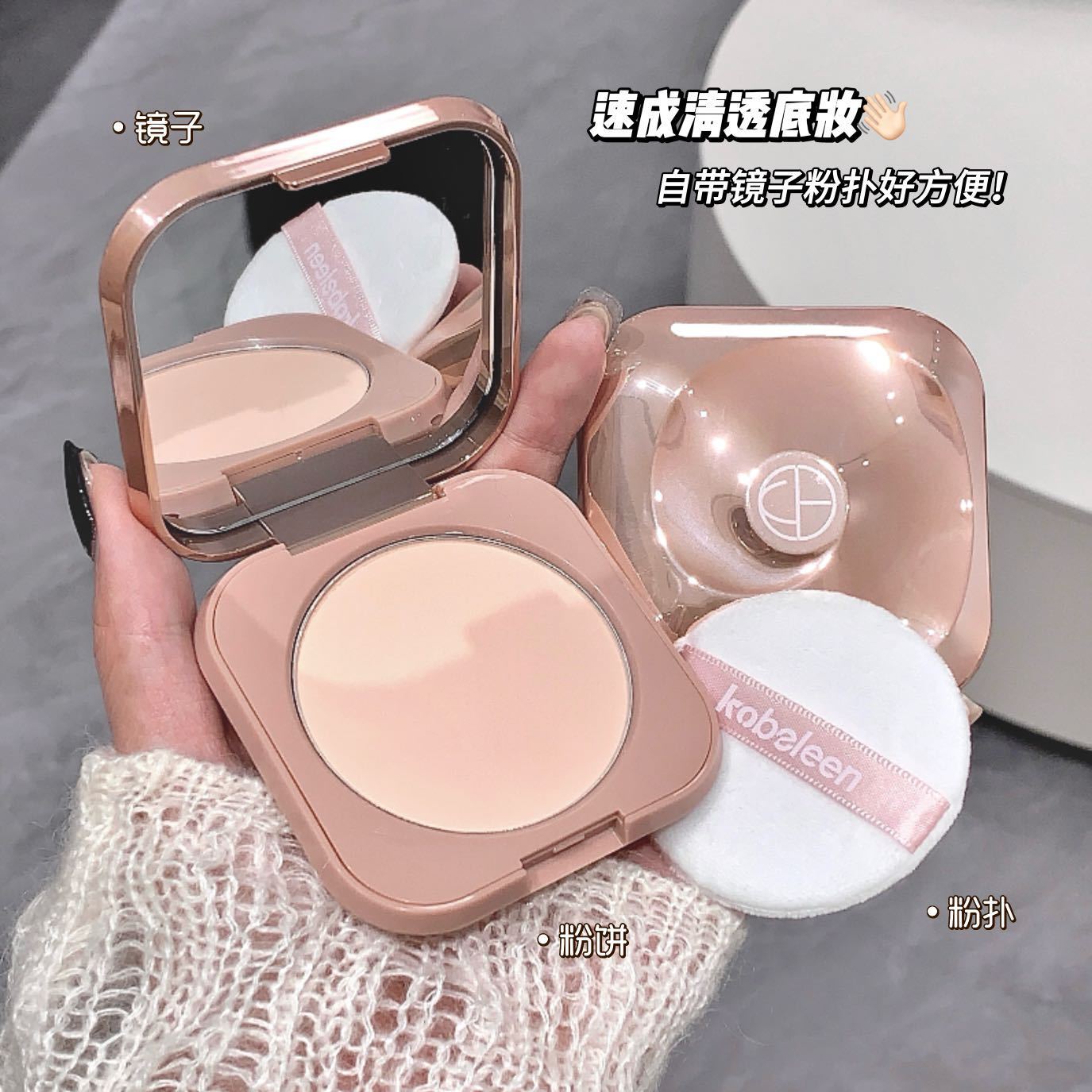 Kobeleenは顔が軽くて化粧粉餅を隠しています。持続的に油をコントロールします。防水で汗を防ぎます。化粧をしにくいです。