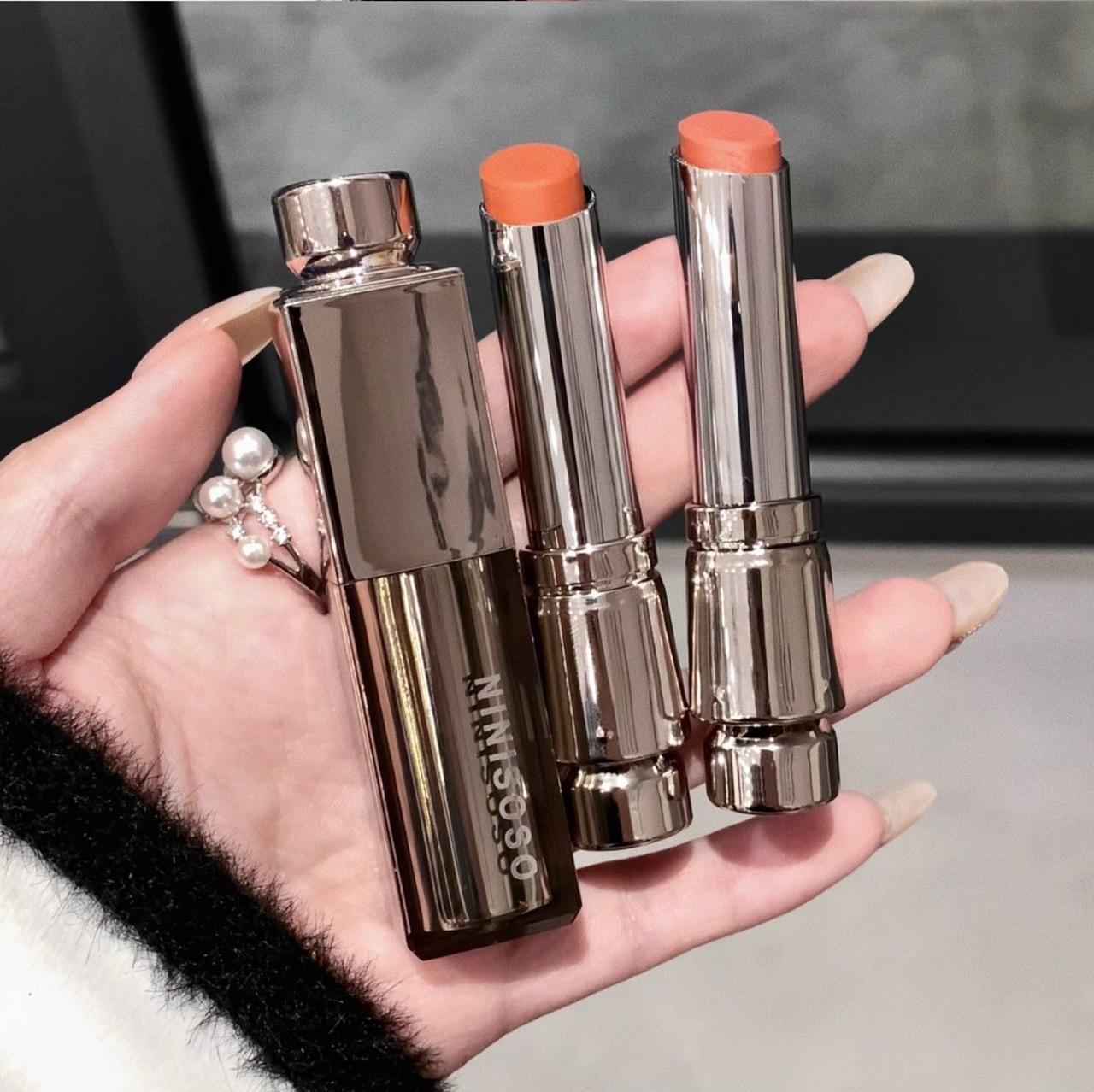 ニニソソのサテン感のベルベットの口紅の霧の面のつや消しの低い飽和の偽のすっぴんの平価は白い空気の唇の泥の唇の膏を現します。