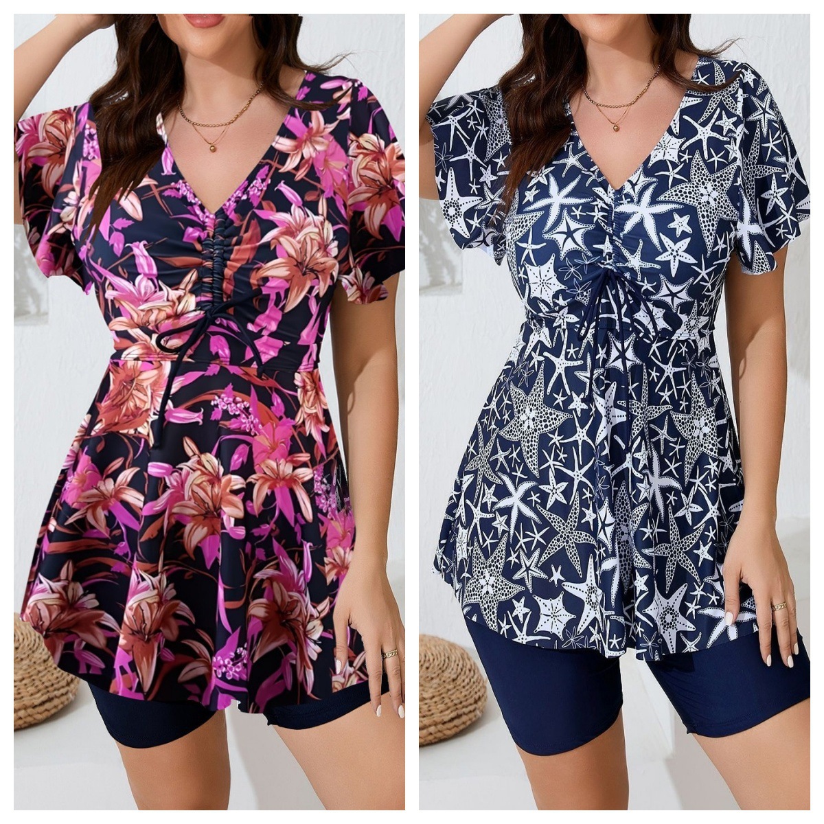 2025 ヨーロッパとアメリカの新しいスカートボクサーブリーフタンキニクロスボーダーアマゾンプリント保守的なリゾート温泉水着女性用