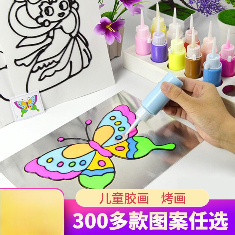 子供用ノーベイクガラス接着剤絵画立体ベイクド絵画セットDIY手描き軟膏顔料ステッカー作成