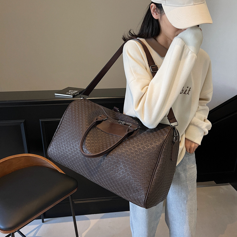 男女型短距離出張大容量偽編み格子型手提げ荷物バッグ外出旅行カバンプルオーバー