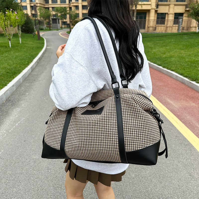 カジュアルでシンプルな格子縞の旅行に出かける腋の下の手提げ旅行バッグ乾湿分離フィットネスバッグはタイロッドをセットすることができる