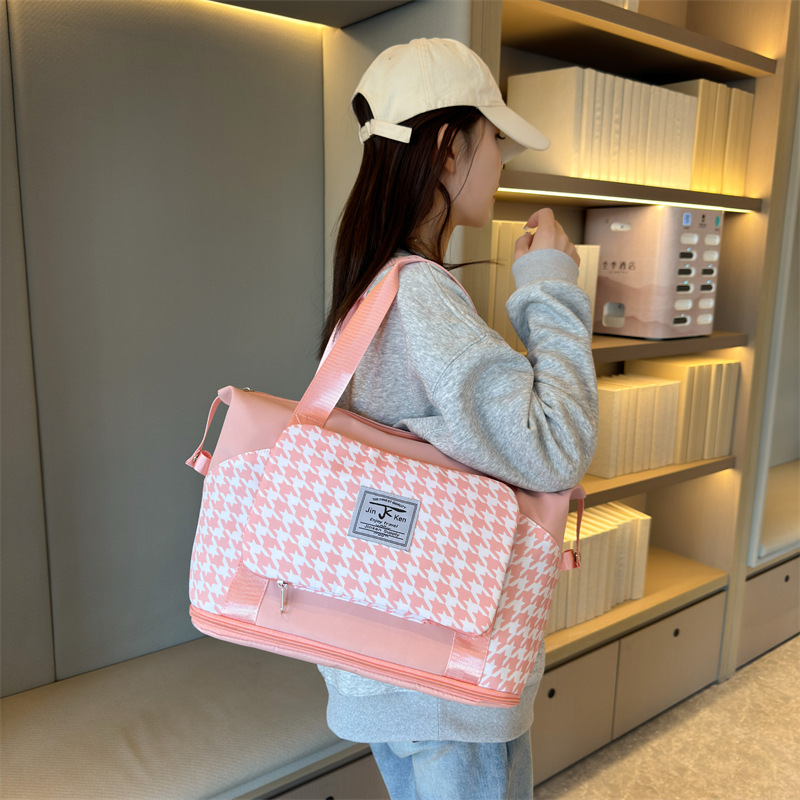 乾湿分離フィットネスバッグ外出大容量折り畳み可能な格子衝突色荷物バッグセットレバー