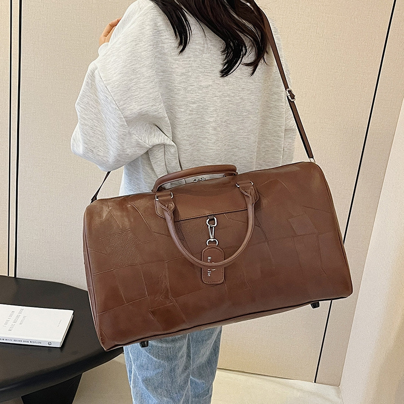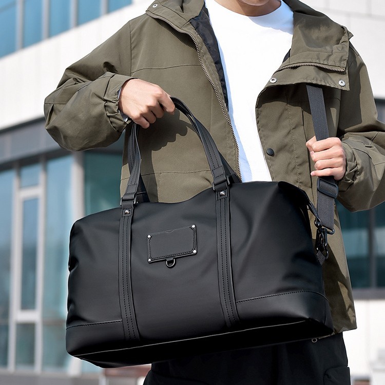 クロスボーダー男女モデルファッションシンプル出張大容量手提げ荷物バッグPUモデルパッチデザイン旅行バッグ
