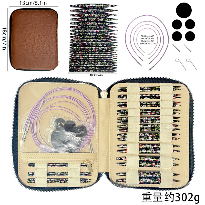 1セット13付ブラウンpuバッグ編みツール2024項アルミナプリントリムーバブルリングニードル