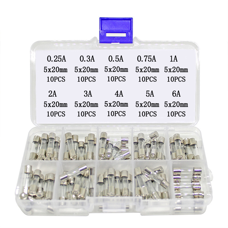 現物ガラス保険管5*20mm 0.25a ~ 6aヒューズ管10種類のケース保護装置