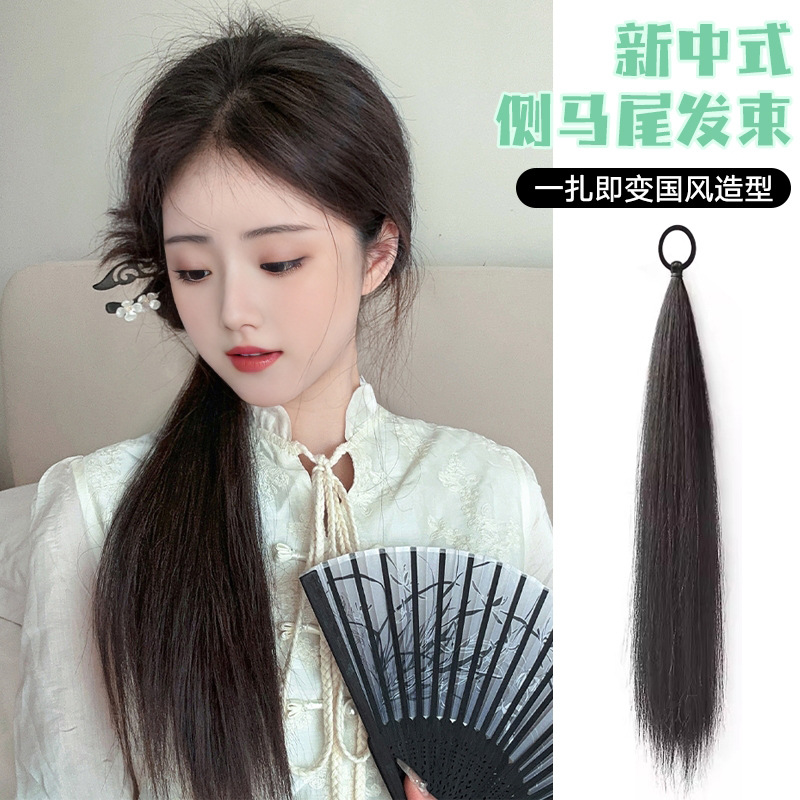 新しい中国風のポニーテールウィッグ女性のヘアバンドスタイルストレートヘアバンドル漢服チャイナサイドローポニーテールロング三つ編みドロップシッピング