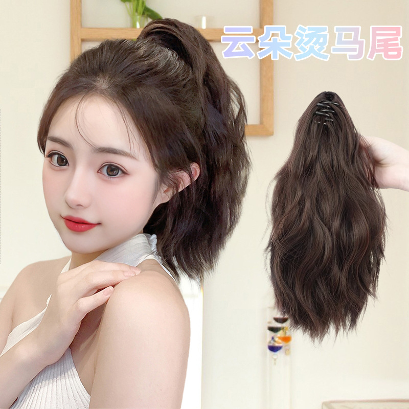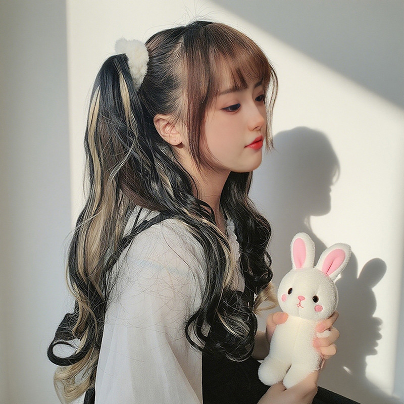 メーカー直販かつら馬尾女高温糸長髪大波お下げバンド式挑染梨花巻双馬尾