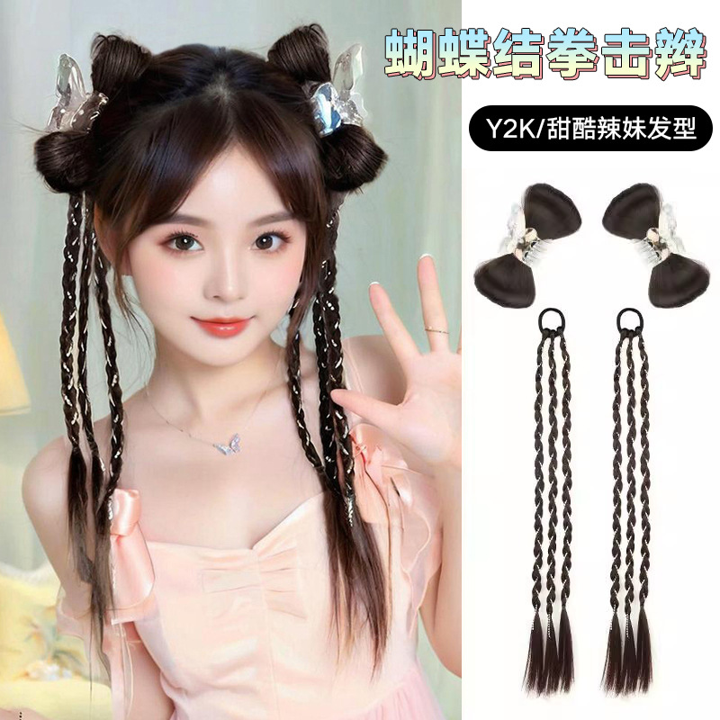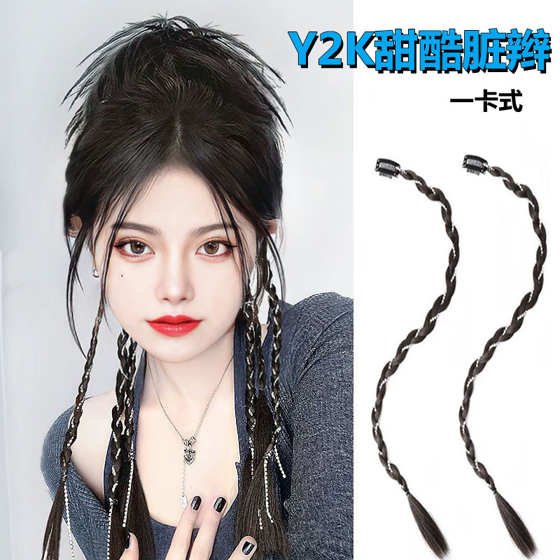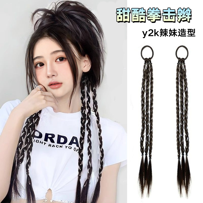 Y2kかつらのお下げの子供のカード式の麻花のお下げの髪の切れのネットの赤いタイプのボクシングのお下げの短視の周波数帯の商品