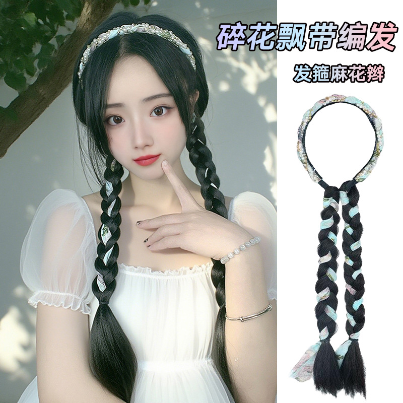 工場の新商品のかつらの女性の化学繊維の長い髪の魚の骨のお下げのリボンのカチューシャの一体のファッション的な手は大きいお下げのツインテールを編みます。
