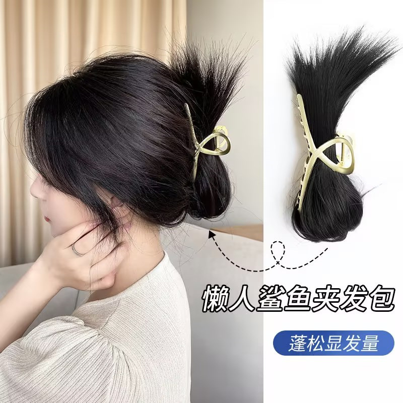 メーカーの卸売りかつらの女性の新型のシミュレーションのサメは団子の頭を挟んで怠け者の取り外し式の自然なつぼみの馬尾を挟みます。