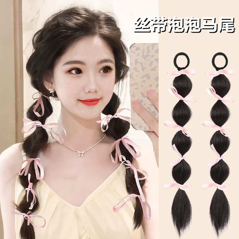 工場の人気かつらのポニーテールの女性のリボンは泡のポニーテールのバンド式のシミュレーションのボクシングのお下げの髪の現物を縛ります。