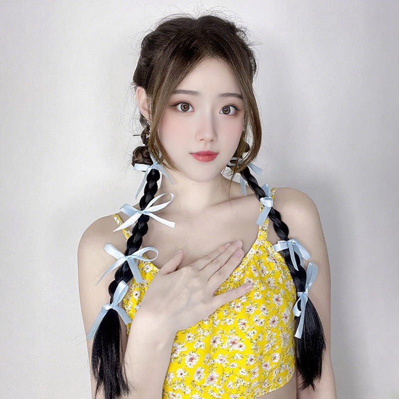 ディザトーン生放送では、ポニーテールのかつらを持っている女性のカラーロープの手で三つ編みのお下げを編んでいます。