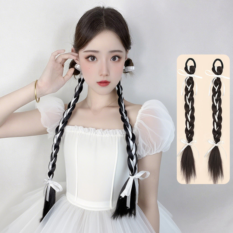 バレエスタイルの女性用ウィッグ三つ編み、リボン編み、ツイストブレイズ、人工毛ボクシングブレイズ、ダブルポニーテール、卸売在庫あり