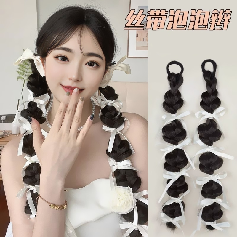 抖音で話題のウィッグ、女性用ヘアクリップ、ポニーテール、バレエ風リボン編み込みヘア、麻ひもロングブレードヘアアクセサリー、メーカー卸売