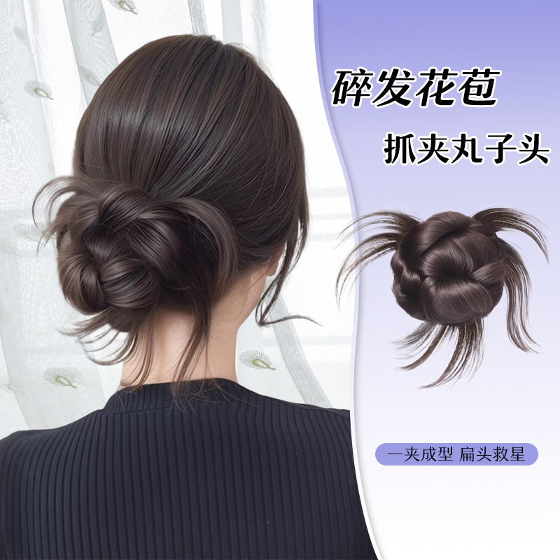 女性用ミートボールヘアウィッグ、模擬ヘア、花のつぼみヘアアーティファクト、クリップ式後頭部ウィッグ、工場直販
