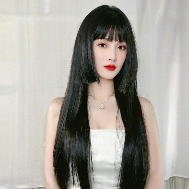 韓国ネット紅紫長髪cosかつら女性空気斉前髪長直髪模擬髪カバー工場卸売り