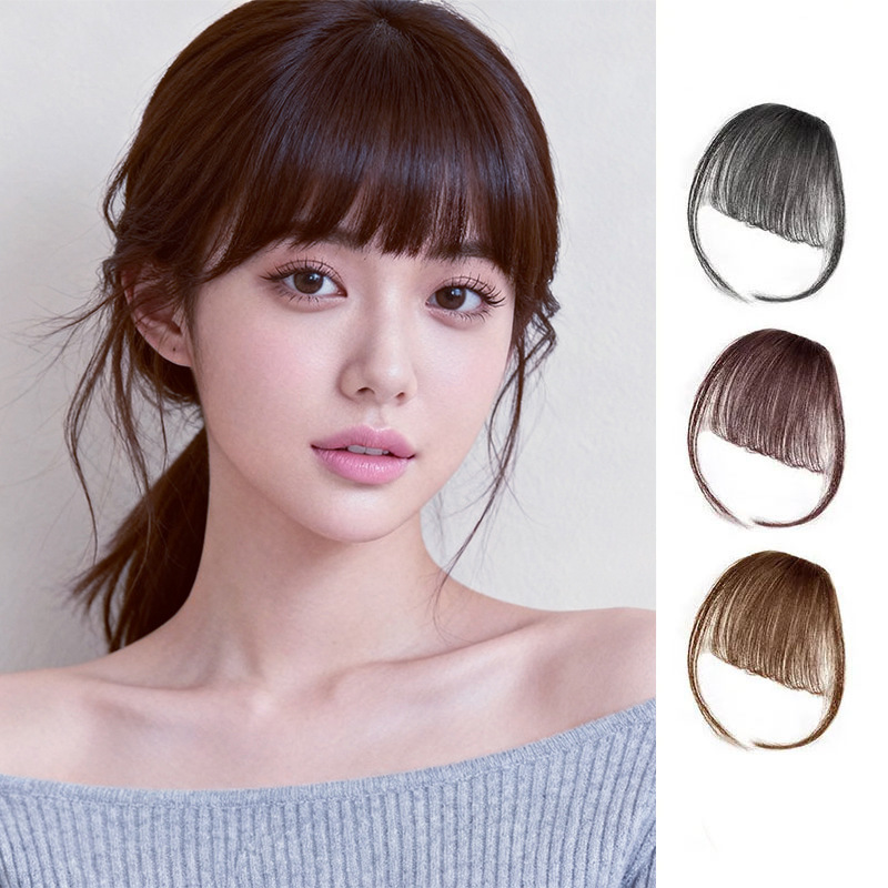 前髪付きウィッグ、エア前髪、ヘアエクステンション、シームレス、自然な見た目、ドロップシッピング対応、前髪付き