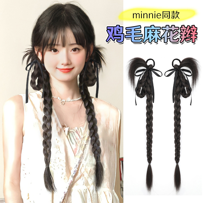 メーカー在庫あり、甘くてクールなホットガールのダブルポニーテールウィッグ、女性用ネットセレブリティリボン編み込みヘア、ツイストブレイズ、模擬ボクシングブレイズ