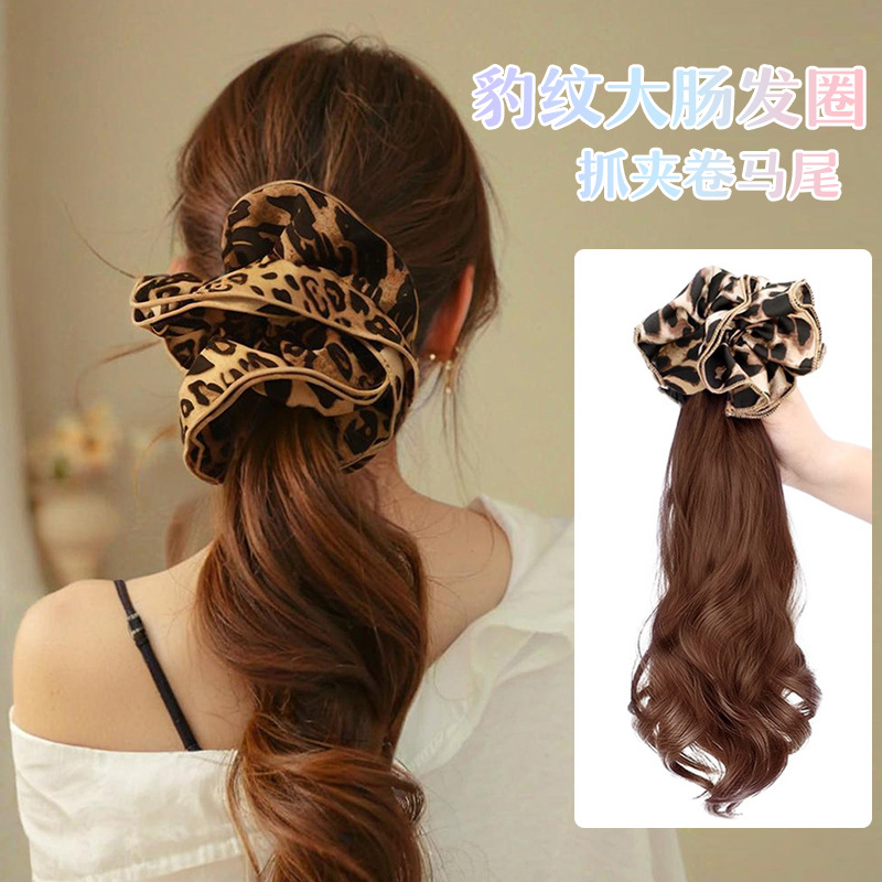 震える音の爆発のヒョウの紋様の大腸の髪の輪は馬尾のかつらの女性の高温の糸の巻き髪の馬尾のお下げのメーカーの現物をつかみます。