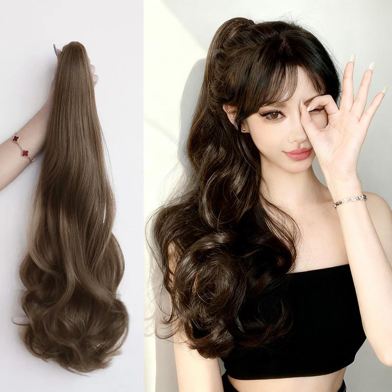 震え音起爆かつら馬尾三歯小クリップ金長巻き化繊高温糸高ポニーテールメーカー現物