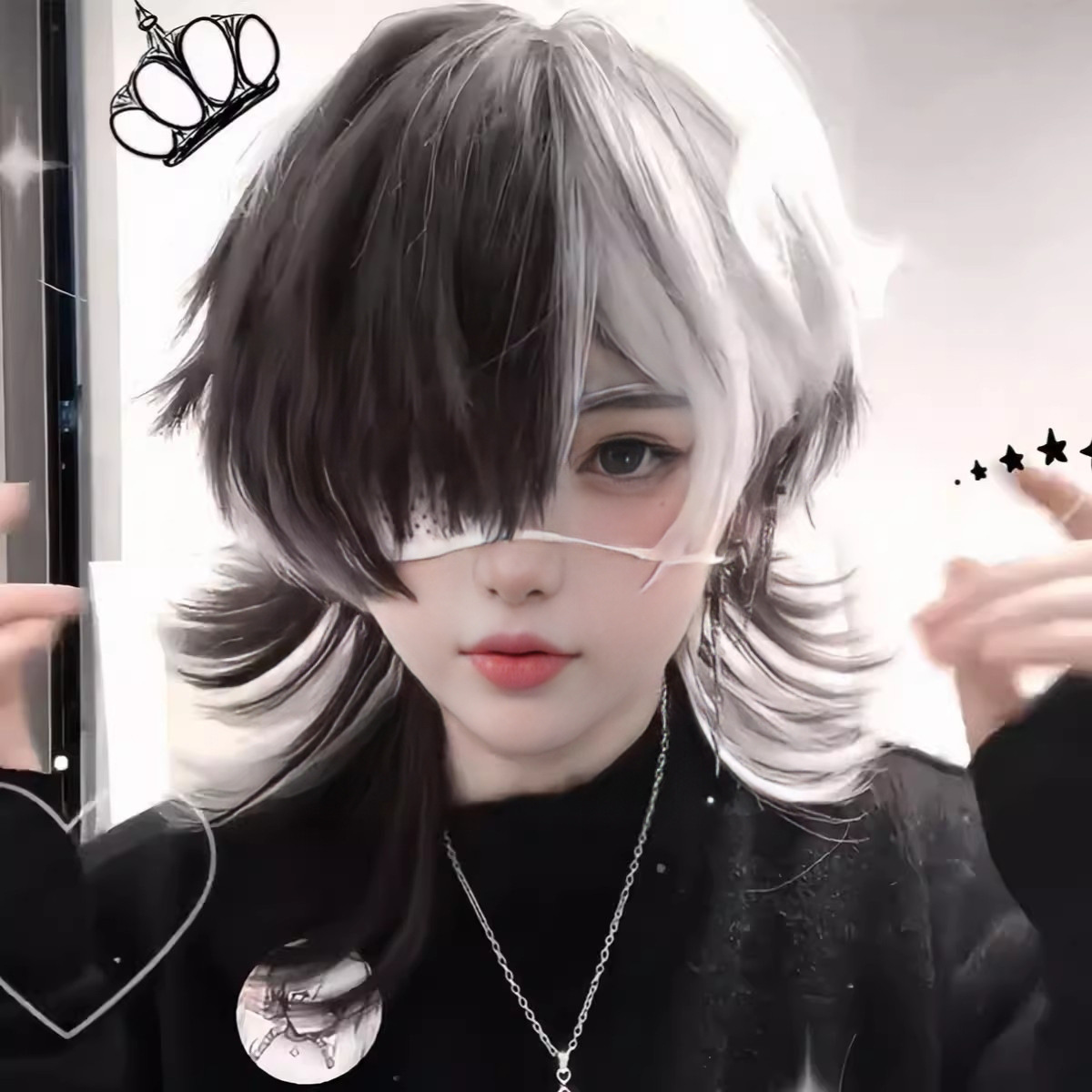 Cosかつら男女通用狼尾魚頭ハロウィーン白黒挑染短髪高温糸全頭カバー卸売り