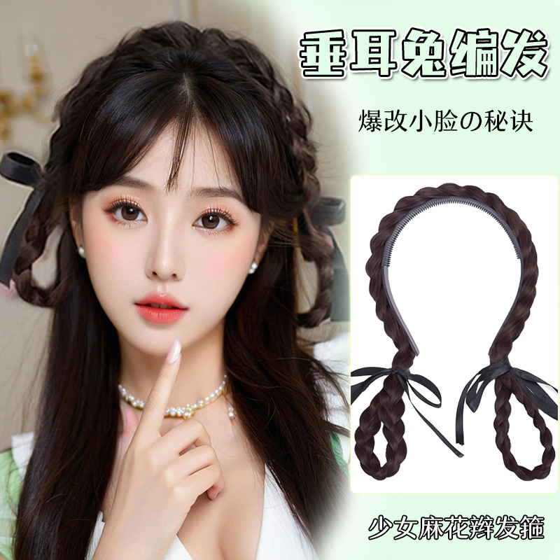 震え音の新型の耳を垂れたウサギのカチューシャのかつらのお下げの子供のシミュレーション新中国式編みの麻花のお下げのカチューシャ工場の卸売り