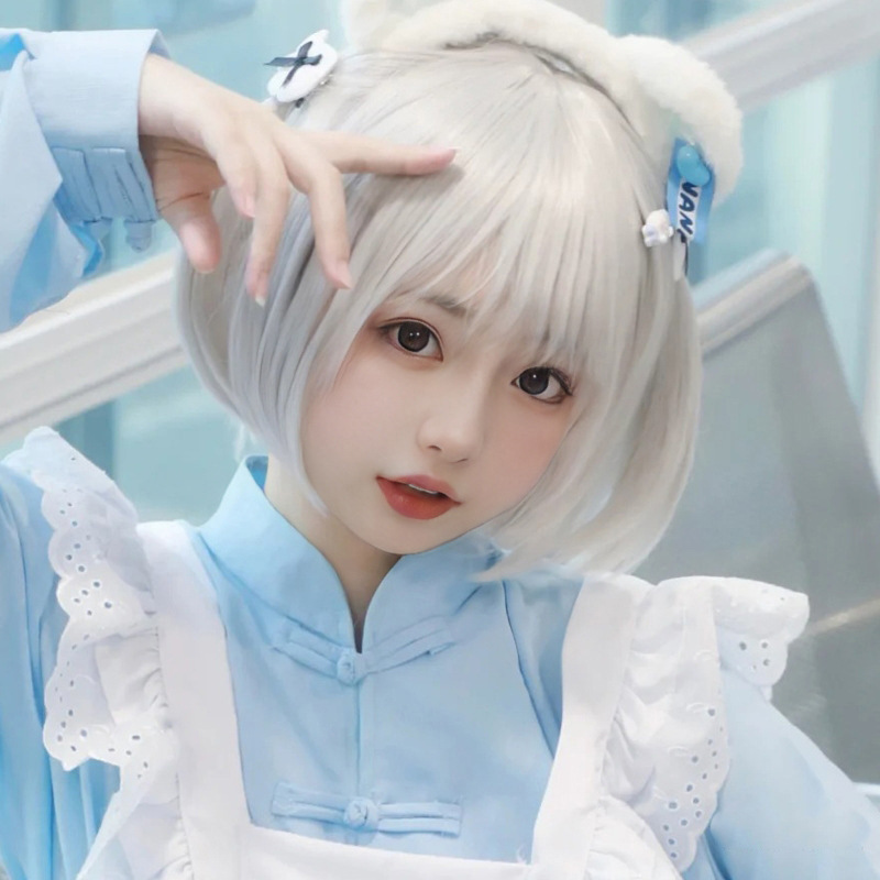 コスプレウィッグ 女性用 ショートヘア 白 ボブヘア ロリータ系 メガネ娘風 仮装 化繊製 フルウィッグ 卸売