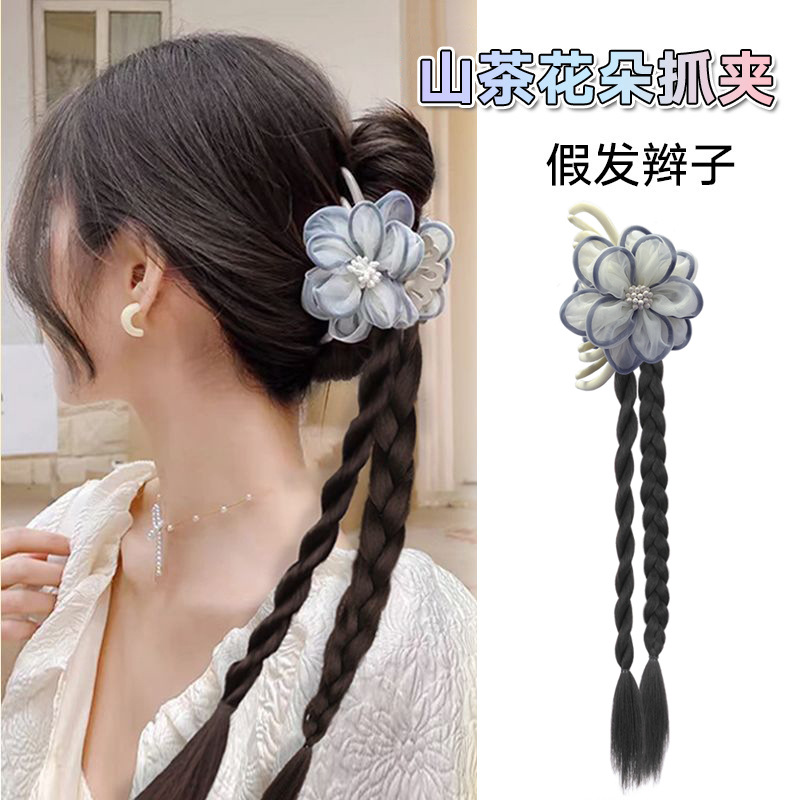 新中国式クリップポニーテール国風山青流蘇ヘアクリップ手作り編み髪ツイスト麻花お下げかつらおさげの子供