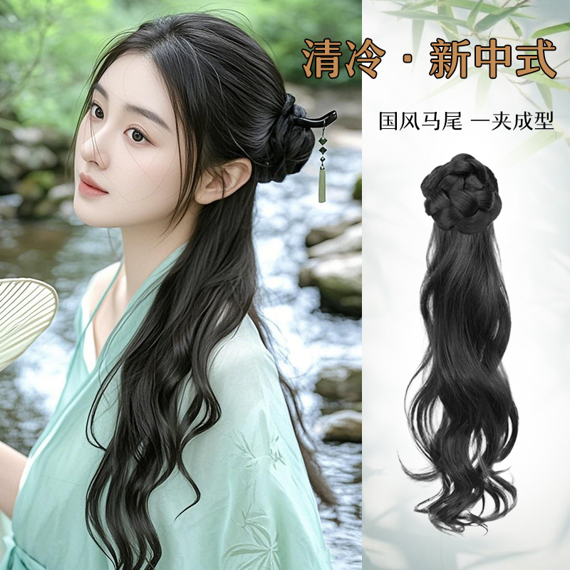 新しい中国風のかつら三つ編みポニーテール女性のライトナショナルスタイルクリップボールポニーテールオールインワン漢服チャイナドレス編組ヘッドギア卸売