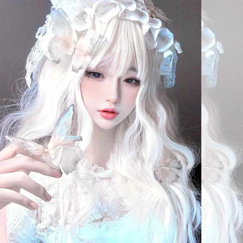 Cosかつらの女性の白い長いカールlolitaの大きい波のdoll感の偽の毛の長い髪のカバーのメーカーは卸売りします。