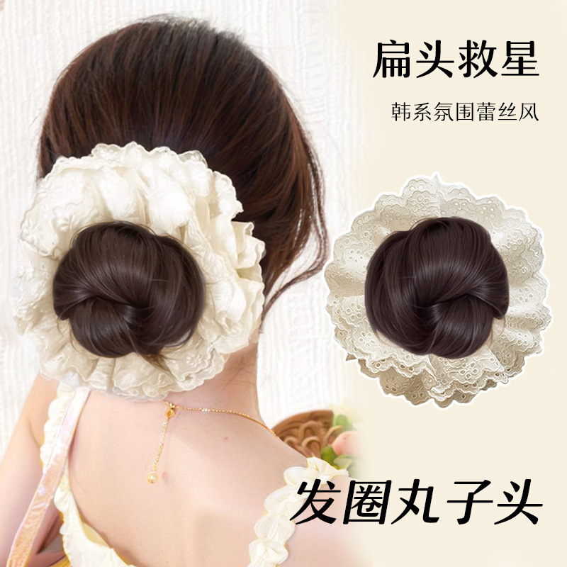 震え音爆金韓系大腸髪輪掴み丸子頭かつら包一体式女性ふわふわつぼみ工場卸売り