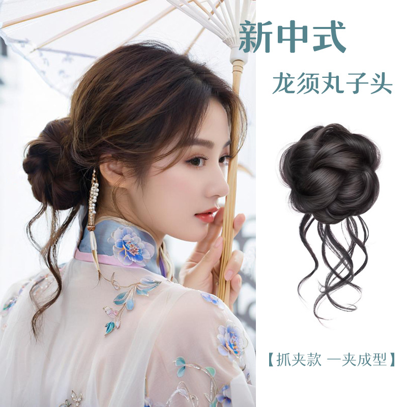 龍ひげボールヘッドウィッグクリップ女性用オールインワン新中国風模擬花つぼみヘアスタイルふわふわヘアバッグ工場直販