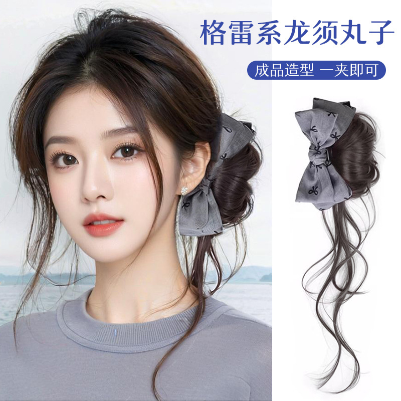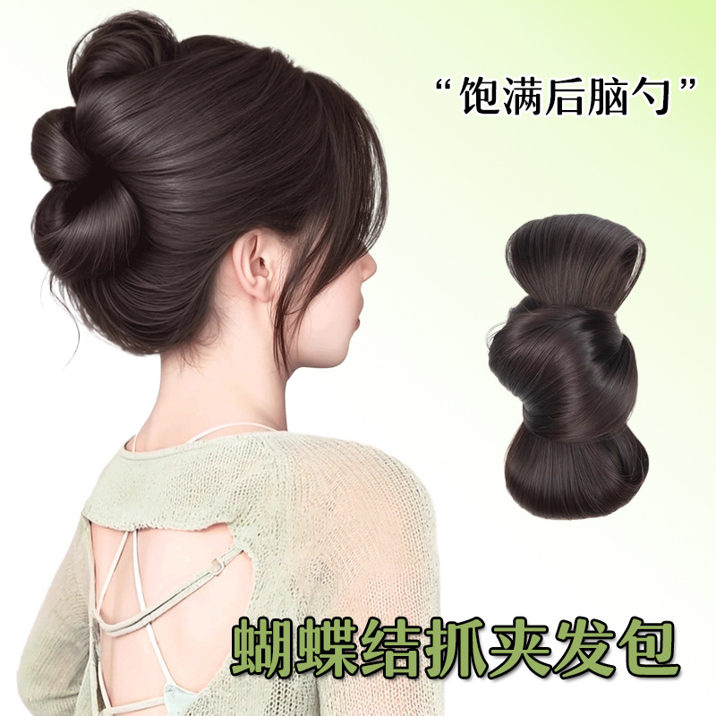 ウィッグクリップ、蝶結び、龍ひげ、丸髪、人工毛、ポニーテール、半分結んだ髪クリップ、短髪、移行期、偽の花束ヘア