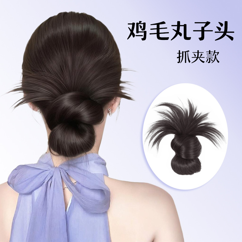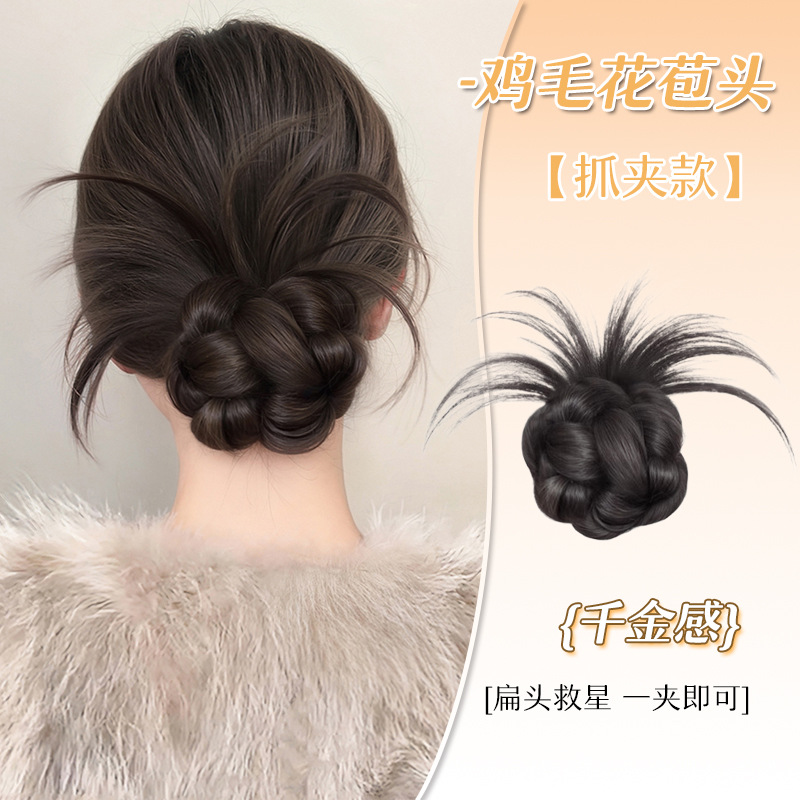 Douyinの人気の女性用低結び目チキンフェザーボールヘッドウィッグ、ヘアクリップ、後頭部の花のつぼみウィッグ、工場直販