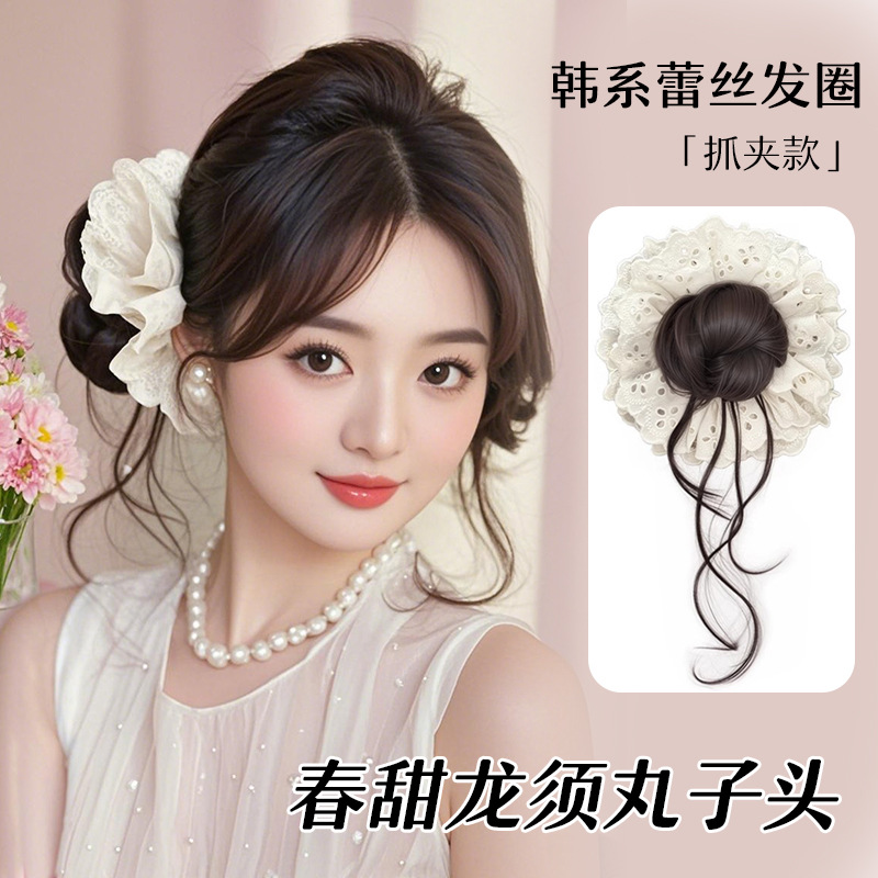 レースグリッターボールヘアウィッグ女性用韓国風インテースヘアリング人工毛ヘアウィッグバッグメーカー在庫あり