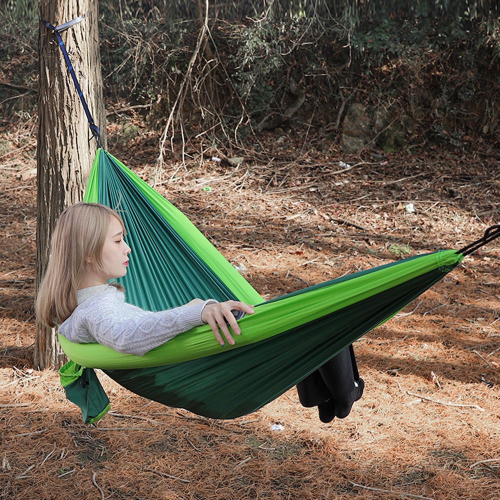 大人と子供用のダブルインフレータブルハンモック屋外スイング、横転防止、屋外キャンプ、防蚊蚊帳