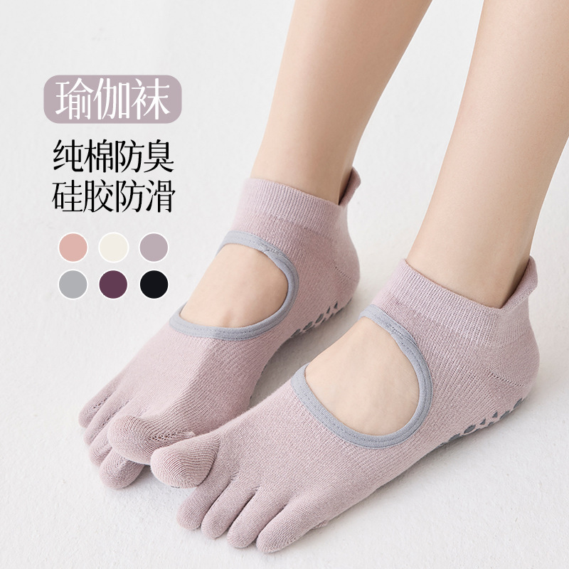 春夏ショートチューブプロヨガソックス分割つま先シリコン滑り止め綿消臭5本指ピラティススポーツ薄い無地