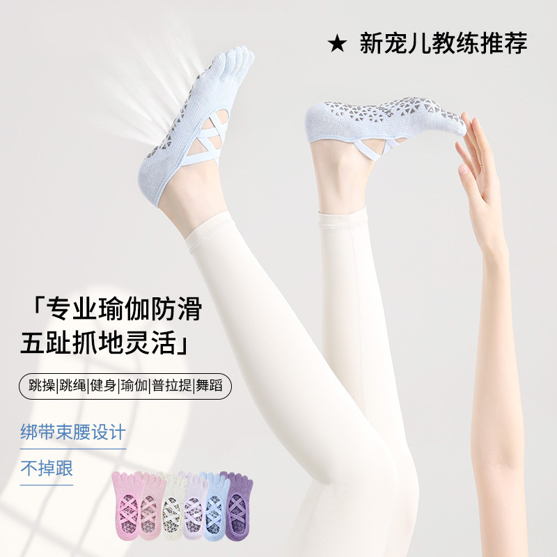 夏通気性バックレスストラップドット接着ヨガソックスノンスリッププロフェッショナル女性の 5 本指ソックスバックレス分割つま先ピラティスソックス